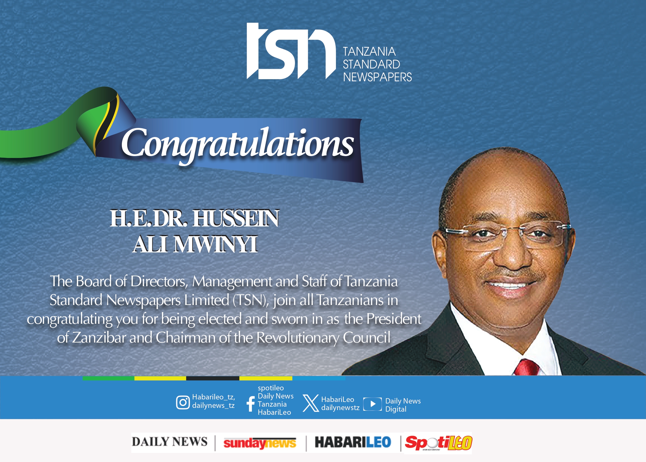 Congratulations Hon. Dr. Hussein Ali Mwinyi